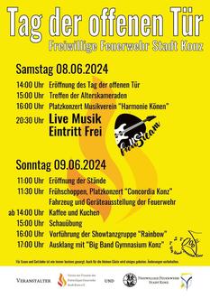 Am kommenden Wochenende (08.06.24 - 09.06.24) öffnet die Feuerwehr der Stadt Konz wieder ihre Türen und Tore für die Bevölkerung.