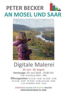 Die Stadt Konz präsentiert seit dieser Woche die neue Städtische Galerie für digitale Malerei in den Räumen der Stadtbibliothek Konz - mit einer Ausstellung von Peter Becker unter dem Titel „An Mosel und Saar“. Bei der Galerie handelt es sich um die erste derartige Einrichtung in Deutschland. Sie widmet sich ausschließlich der Präsentation und Förderung der digitalen Malerei.