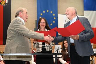 Der Regionalbeauftragte des Partnerschaftsverbandes Rheinland-Pfalz, Franz-Rudolf Schlöder, übergab die Ehrenurkunden für den Stadtteil Konz-Könen und die Gemeinde Charny Orée de Puisaye zum 55. Partnerschaftsjubiläum.