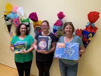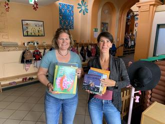 Übergabe an Natalie Nikolay (re.), die sich in der Kita Lorenz Kellner um die Bücherei kümmert.