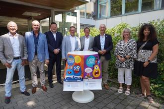 Landrat Stefan Metzdorf und Bürgermeister Joachim Weber haben in der Stadtbibliothek Konz den Startschuss für den Lese- und Vorlesesommer 2023 gegeben. 1.000 lustige und spannende Geschichten warten darauf, gelesen und vorgelesen zu werden. Die neuen Bücher konnten mithilfe von Sponsoren gekauft werden, die ebenfalls beim Start der Aktion dabei waren: neben dem Kreis Trier-Saarburg waren das die Sparkasse Trier, die Volksbank Trier und der Lions Club Saarburg.