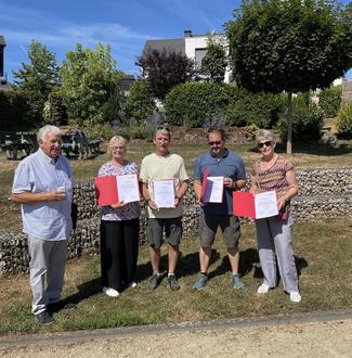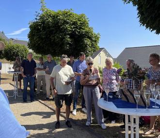 Herr Kastner vom Partnerschaftsverband Rheinland-Pfalz – Burgund richtete seine Grußworte an alle versammelten Teilnehmer. Weiterhin wurden vom Partnerschaftsverband aktive Mitglieder der beiden Orte für ihr langjähriges Engagement und der besonderen Verdienste für die Vertiefung der partnerschaftlichen Beziehungen zwischen Rheinland-Pfalz und Burgund-Franche-Comté geehrt. Mit der Ehrennadel in Gold wurden Marine Bourlier und Friederike Scholz sowie Olivier Béné und Edgar Lauer ausgezeichnet.