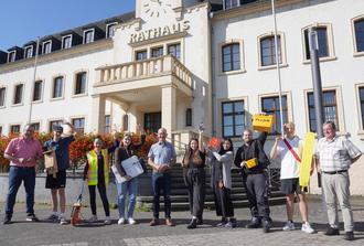 „Yeah, es geht endlich los!“ freuten sich sieben neue Azubis, die in diesem Monat ihre Ausbildung bei der Verbandsgemeindeverwaltung Konz begonnen haben. Im Rathaus wurden sie von Bürgermeister Joachim Weber (Foto: Mitte), Büroleiter Günter Benzkirch (Foto: ganz links) sowie Ausbildungsleiter Karl-Josef Hild (Foto: ganz rechts) ganz herzlich begrüßt.