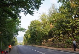 Hoch über der Straße hängt die neue Eichhörnchenbrücke