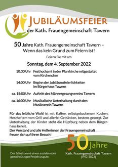 Die Frauengemeinschaft Tawern kann in diesem Jahr auf eine 50-jährige Geschichte zurückblicken. Aus diesem Anlaß wird am Sonntag, dem 04. September 2022 ein großes Fest gefeiert.