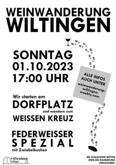 Wir wandern am Sonntag, 01.10, 17 Uhr und starten wie immer am Dorfplatz in Wiltingen.