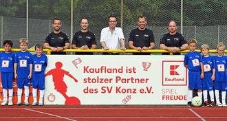 Zum Einstieg in eine längerfristige Werbepartnerschaft beim Sportverein Konz unterstützt Kaufland unsere F-Jugend mit Sportkleidung. Einen Komplettsatz Trikots in den Vereinsfarben und mit Kaufland-Logo überreichte Tim Rommelfanger, Leiter der Konzer Kaufland-Hauses, dem Trainerteam der Jugendmannschaft. Der SV Konz bedankt sich für die Spende und freut sich auf die Partnerschaft mit dem größten Konzer Einkaufsmarkt.