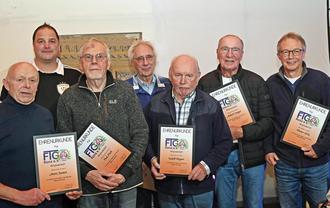 Das 50-jährige Vereinsjubiläum der FTG Konz wurde nun in der Konzer Antoniushütte in würdigem Rahmen gefeiert. Nach den Grußworten von Frau Röhlich-Pause (Stadtbeigeordnete), Frau Molter-Abel (Kreisbeigeordnete), Jens Tossing (Sportkreisvorsitzender) und Raimund Kersten (TG Konz) wurden die Gründungsmitglieder (Foto v. l. Heinz Sausen, Paul Fisch, Walter Beer, Rudolf Wagner, Hubert Junges und Werner Götze, dazu Hans-Jürgen Otto sowie die verstorbenen Josef und Günther Theis) geehrt.