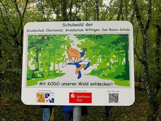 Gemeinsam mit den Schulgemeinschaften der Grundschule Oberemmel, der Grundschule Wiltingen und der Don-Bosco-Schule enthüllte die Stiftung das Schulwaldschild. In dem Areal können die Kinder in Zukunft rumtoben und die Natur erleben. So erkennen sie im Rahmen der Umweltbildung auch Zusammenhänge im Ökosystem.