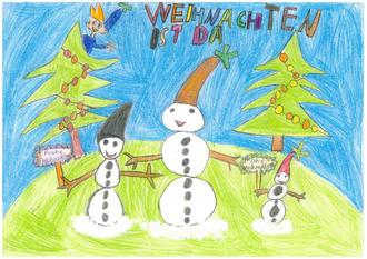 Bunt geschmückte Tannenbäume und drei Schneemänner. Dieses Motiv ziert die diesjährige Weihnachtskarte von Bürgermeister Joachim Weber. Gemalt wurde es von Marlene Reich aus der vierten Klasse der Grundschule St. Nikolaus in Konz.