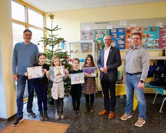 Der Bürgermeister bedankte sich bei einem Besuch in der Grundschule persönlich bei den kleinen Künstlern. Als Weihnachtsgeschenk gab’s ein kleines finanzielles Dankeschön für die Klassenkasse.