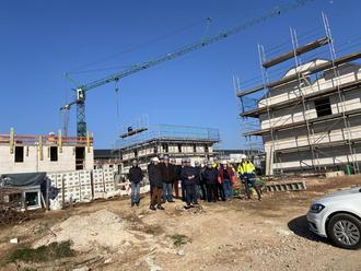 Vertreter der BPD Immobilienentwicklung führten die Gruppe durch die Einfamilienhäuser des ersten Teilbereichs, die bald bezugsfertig sind. Die BPD entwickelt und organisiert den Vertrieb des Baugebiets