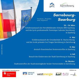 Veranstaltungen im Rahmen der deutsch-französischen Partnerschaft werden unterstützt von Sparkasse Trier, Volksbank Trier und Westenergie. Den Schüleraustausch der Berufsbildenden Schulen Saarburg mit Lycée professionelle Dominique Labroise Sarrebourg fördert das Deutsch-Französische Jugendwerk.