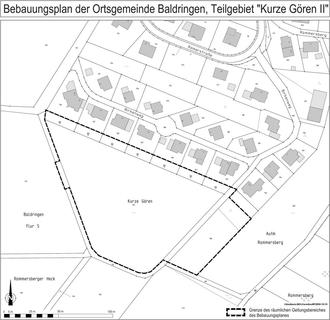 Der Ortsgemeinderat Baldringen hat in seiner Sitzung am 19.12.2024 den Bebauungsplan für das Teilgebiet „Kurze Gören II“ als Satzung gemäß § 10 Abs. 1 des Baugesetzbuches (BauGB) beschlossen. Der Satzungsbeschluss wird hiermit gemäß § 10 Abs. 3 BauGB ortsüblich bekannt gemacht. Der Bebauungsplan tritt mit dieser Bekanntmachung in Kraft. Der Geltungsbereich des Gebietes liegt im südlichen Ortsrandbereich, im Anschluss an die Bebauung im Birkenweg und ergibt sich aus nachstehendem Plan.