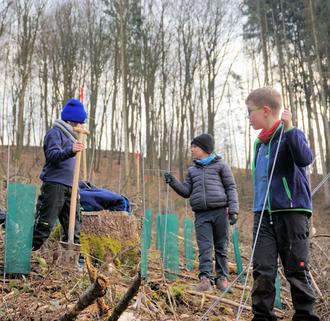 Kinder und Jugendliche pflanzen begeistert einen neuen Wald im Rahmen des Landesforsteinsatzes in Trassem Fotos: Landesforsten RLP, Alanis Menge