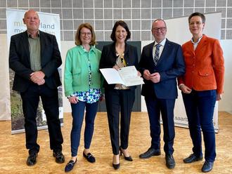 Staatsministerin Daniela Schmitt (Ministerin für Wirtschaft, Verkehr, Landwirtschaft und Weinbau des Landes Rheinland-Pfalz) überreichte am 11. April in Wincheringen einen Förderbescheid über 3,5 Millionen Euro an Bürgermeister Jürgen Dixius für den Neubau einer barrierefreien Mehrzweckhalle. Die Fördermittel werden aus dem Förderprogramm „Gemeinschaftsaufgabe zur Verbesserung der Agrarstruktur und des Küstenschutzes“ (GAK) bereitgestellt.