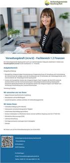 Die Verbandsgemeinde Saarburg-Kell sucht zum nächstmöglichen Zeitpunkt unbefristet in Vollzeit eine Verwaltungskraft (m/w/d) für den Fachbereich 1.2 - Finanzen.
