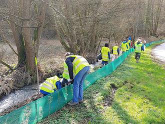 Kontrollgang von Kindern und Jugendlichen am Amphibienschutzzaun in Trassem. Foto: Dietmar Schwarz