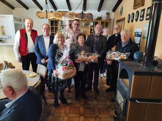 Bürgermeister Jürgen Dixius sowie Pastor Kai Quirin überbrachten Grußworte und wünschten allen Beteiligten einen harmonischen Nachmittag. Pastor Kai Quirin zitierte u.a. humorvolle Weisen von Heinz Erhardt. Bürgermeister Jean Bernard Martin bedankte sich für die Einladung und ging in seinem Grußwort auf die ältesten Mitwirkenden am Seniorennachmittag ein, Klara Treinen ist 88 Jahre und Peter Weber 90 Jahre alt. Beide erhielten als Dank für ihren Einsatz im Dorfleben ein Präsent der Ortsgemeinde sowie der Partnerschaftsgemeinde aus Cocheren. Mit einem umfangreichen Programm hatten die Veranstalter den über 65-jährigen Bürgerinnen und Bürgern Lampadens einen abwechslungsreichen Nachmittag geboten. Die Gruppe „De Lamperder“ unterhielten die Gäste mit Liedern zum Mitsingen. Für die Gruppe „LampaDia“ gab Bernd Hermesdorf einen Ausblick auf anstehende Veranstaltungen und trug u.a. Geschichtliches zum Wiederauferstehen der Ortsgemeinde Lampaden nach dem „Dreißigjährigen Krieg“ vor. Der Ortsteil Niedersehr spielte in der Vergangenheit wohl eine dominierende Rolle, da u.a. anhand des Familienbuches von Heribert Scholer hervorgeht, dass viele Lampadener aus Niedersehr stammen. Zwischendurch erfreuten sich die Teilnehmer bei spannenden Bingo-Runden. Den Gewinnern wurden Präsente von „Ebbes von hei“ überreicht.