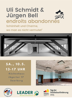 Die Stadt Saarburg und die Deutsch-Französische Gesellschaft Saarburg laden zur Vernissage der Fotoausstellung "Endroits abandonnés - Schönheit und Charme, wo man es nicht vermutet“ ein. Die Ausstellung wird erstmals am Tag des Städtebaus, am 10. Mai, von 13 bis 17 Uhr, in den Räumlichkeiten des neu gestalteten Küchenhauses im Bereich der früheren Kaserne de Lattre präsentiert. Interessierte sind herzlich eingeladen, an der Vernissage ab 13 Uhr teilzunehmen und die Werke der beiden Künstler Uli Schmidt und Jürgen Bell zu entdecken. Beide Künstler freuen sich auf einen anregenden Austausch mit den Gästen.