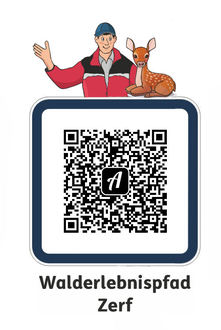 Waldfreund Silas und Hirschkalb Karo führen digital über den Walderlebnispfad Zerf. Nutze dazu die App „Actionbound“ und scann mit der App den Start-QR-Code ein.