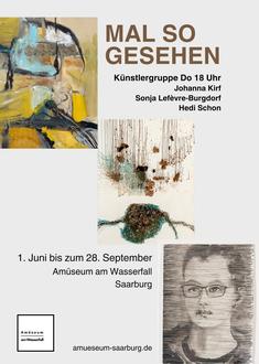 Das städtische Museum Amüseum am Wasserfall in Saarburg präsentiert vom 1. Juni bis 28. September die Ausstellung „Mal so gesehen“ der Künstlergruppe Do 18 Uhr. Die Vernissage findet am Sonntag, 1. Juni, um 11 Uhr in Anwesenheit der Künstlerinnen statt.
