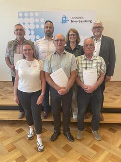 Hintere Reihe v.l.: Arnold Kunz, Ortsbürgermeister Patrick Francois, Erste Beigeordnete Simone Thiel, Ortsbürgermeister Peter Hemmerling, Vordere Reihe v.l.: Ortsbürgermeisterin Jennifer-Laura Höfer, Johann Gouverneur, Josef Bertel