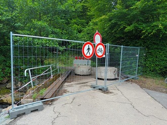 Das Starkregenereignis am 17.05.2024 hat zu erheblichen Schäden am Bauwerk der Hinzenburger Mühle geführt. Die gemauerten Brückenauflager sind massiv unterspült und stark beschädigt. Aufgrund der erheblichen Mängel des Brückenbauwerks wurden im Dezember 2024 Sofortmaßnahmen zur provisorischen Sicherung des Brückenbauwerks durchgeführt. Zwischenzeitlich hat sich der Zustand des Bauwerks weiterhin verschlechtert. Aus diesem Grund bleibt die Brücke bis auf Weiteres ebenso für Fußgänger und Fahrradfahrer gesperrt.