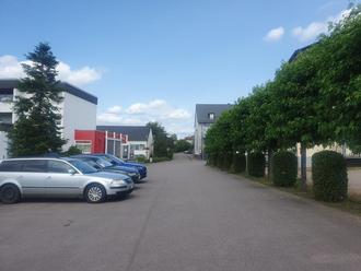 Neuanordnung der Stellplätze für Fahrzeuge und Gestaltung des Parkplatzes