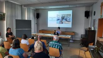 Zey ging in ihrem Vortrag ebenfalls auf die Lebensart der Tauben ein. Sie erläuterte, wie sich die Tiere an das Leben in der Kommune angepasst haben und welche erstaunlichen Eigenschaften sie besitzen, die häufig übersehen werden. Ziel der Veranstaltung war es, Vorurteile gegenüber den Tieren abzubauen, Ängste ernst zu nehmen und eine sachliche Diskussion zu fördern. In einer konstruktiven Atmosphäre wurden die verschiedenen Aspekte des Themas erörtert. Dabei wurde deutlich, dass ein Fütterungsverbot kontraproduktiv wäre. Zey verwies u.a. darauf, dass hungrige Tauben unruhiger sind und mehr Eier legen als gut ernährte Tauben. Besonders wurde betont, dass eine artgerechte Fütterung eine nachhaltige Lösung darstellt. Erhalten Tauben Körnerfutter sei ihr Kot trocken und leicht zu entfernen. Dies betonte auch Baubiologin Rummel. Eine komplette Entfernung der Tauben sei nicht zielführend, da schnell neue Tauben das Revier übernehmen würden. Für ein natürliches Gleichgewicht sorgen ohnehin hiesige Greifvögel. Besonderes Augenmerk lag auf der praktischen Hilfestellung, die bei der Vergrämung von Tauben an unerwünschten Orten angeboten wurde. Diese Möglichkeit wurde von den Teilnehmenden positiv und als sinnvoller Beitrag zum Zusammenleben von Mensch und Tier in Dörfern und Städten bewertet.