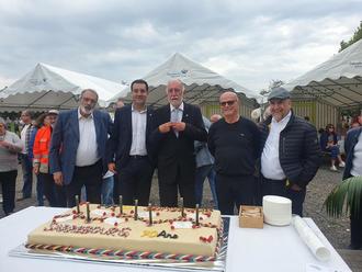 Mit einer großen Delegation der Vereine von mehr als 100 Personen machte sich die Stadt Saarburg am 24. September auf den Weg in die Partnerstadt Sarrebourg. Mit dabei waren die Beigeordneten Franz-Josef Reiter und Johannes Kölling, Vertreter des Stadtrats, die Erste Beigeordnete Simone Thiel, Kreisbeigeordneter Lutwin Ollinger, Ehrengast und Mitbegründer der Partnerschaft Dr. Karl-August Reckmann und Jonathan Spindler vom Deutsch-Französischen Bürgerfonds. In der Freizeitzone in der wunderbaren Umgebung des Sees am Rande der Innenstadt hatten der Sarrebourger Stadtrat sowie Mitarbeiterinnen und Mitarbeiter der Sarrebourger Stadtverwaltung unter Leitung der Beigeordneten Bernadette Panizzi einen gemeinsamen Tag organisiert. Sarrebourgs Bürgermeister Dr. Alain Marty betonte, dass die beiden Partnerstädte sich früh annäherten und auf eine lange, gemeinsame Geschichte zurückblicken können. Er dankte Bürgermeister Jürgen Dixius, der krankheitsbedingt nicht anwesend sein konnte, die Partnerschaft aber über Jahre gefördert und vorangebracht habe. Beigeordneter Johannes Kölling wies in seiner Ansprache besonders auf die Vereine hin, die die Partnerschaft lebendig hielten. Die Anwesenden unterzeichneten, wie auch am 11. Juni in Saarburg, eine Charta, die die Freundschaft beider Städte bekräftigt. Ein Symbol der Freundschaft sendeten anschließend auch die beiden Feuerwehren auf der Bühne aus. Die Sarrebourger Feuerwehr zeigte ihr Können in mehreren Vorführungen: Höhenrettung, Lösch-Manöver der Jugendfeuerwehr und Hundestaffel. Sportlich ging es um den See mit dem Nordic-Walking-Club. Die kleinen Gäste hatten Spaß beim Bogenschießen und Boule-Spielen. Für eine Überraschung sorgte die Bäckerei-Innung mit einer Geburtstagstorte. Musikalisch umrahmt wurde die Veranstaltung mit einem gemeinsamen Konzert der Harmonie Municipale aus Sarrebourg und dem Musikverein Saarburg. Auch mit dabei waren der Fanfarenchor aus dem Sarrebourger Stadtteil Hoff, das Duo Saarwald und Bernard vom Violetta Orchester. Parallel wurde nachmittags in der Stadtbibliothek eine Kunstausstellung mit dem Titel "Zwischen Empfindungen und Gefühlen: Josef Kochems - Saarmaler“ eröffnet, die Werke des 1923 in Saarburg geborenen Malers zeigt.