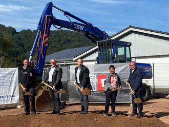 Mit dem symbolischen ersten Spatenstich hat der Ortsverband des Technischen Hilfswerks (THW) Saarburg vergangene Woche den Baubeginn für sein künftiges Domizil Gewerbegebiet "Am Saarufer" gefeiert. Gemeinsam mit dem THW-Ortsbeauftragten Fabian Weiland griffen Bürgermeister Jürgen Dixius und Niederlassungsleiter Dr. Wilfried Hoffmann vom Landesbetrieb LBB zu den Spaten.