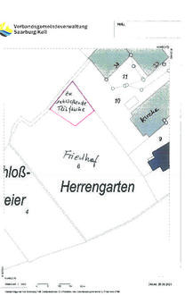 Ein Lageplan mit der gekennzeichneten Fläche ist beigefügt.