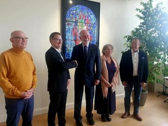 Stadtbürgermeister Andreas Reymann besuchte am 9. Oktober bei einem ersten offiziellen Kennenlerntreffen die französische Partnerstadt Sarrebourg. Im Mittelpunkt des Besuchs stand die Stärkung der seit über 70 Jahren bestehenden Freundschaft zwischen den beiden Städten. Hierbei traf Reymann auf seinen Amtskollegen Dr. Alain Marty sowie die Beigeordneten Camille Zieger und Bernadette Panizzi. Gemeinsam besichtigten sie die Stadtverwaltung Sarrebourgs und lernten die Mitarbeiterinnen und Mitarbeiter der Verwaltung kennen. Einblicke gab es in den Hochzeitssaal, den Sitzungssaal und das Bürgermeisterbüro.