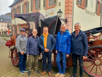 Städtische Kutschfahrer Markus Kautenburger, Walter Girndt, Stefan Seer, Peter Roth und Stadtbürgermeister Andreas Reymann (Mitte)