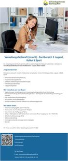 Verwaltungsfachkraft (m/w/d) - Fachbereich 2 Jugend, Kultur & Sport gesucht