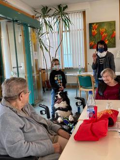 Eine Kollegin und ihre Hündin „Daisy“ wollten die Wünsche gerne erfüllen. Da kam ihr die Idee, den Sohn einer Kollegin „Linus“ zu fragen, ob er nicht eine kleine Vorführung mit Daisy einstudieren und den Senior*innen präsentieren möchte.