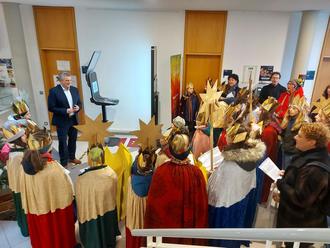 Am Donnerstag, dem 4. Januar 2024 kamen traditionell die Sternensinger:innen der Sternsingeraktion in der Pfarrei St. Walburga Groß-Gerau und Hl. Nikolaus von der Flüe Büttelborn zu Besuch ins Rathaus. Bürgermeister Marcus Merkel freut sich jedes Mal riesig, dass dem Rathaus diese Ehre zu Teil wird.