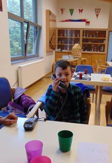 Als Nächstes wurde das Absetzen eines Notrufs geübt und besprochen, dass es für die Leitstelle enorm wichtig ist, exakte Informationen zu erhalten, da bei Bränden mitunter jede Minute zählt. Mithilfe einer eigens für diesen Zweck eingerichteten Haustelefon-Anlage, hatte jedes Kind die Möglichkeit dies sehr praxisnah zu üben und einige Kinder waren tatsächlich so aufgeregt, als ginge es um einen realen Notfall. Trotz Aufregung gelang es jedoch allen sehr gut die sogenannten „W-Fragen“ (Wer spricht? Was ist passiert? Wo ist es passiert? Wie viele Personen sind in Gefahr? Warten auf Rückfragen“) zu beantworten.