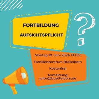 Die Jugendförderung Büttelborn lädt zu einem Abend zum Thema Aufsichtspflicht für ehrenamtlich Tätige im Verein ein.