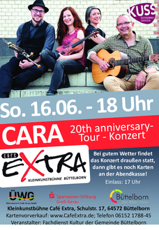 Cara (gälisch: Freund), die multinationale, mit zwei Irish Music Awards und zahlreichen weiteren Preisen ausgezeichnete Band feiert 20-jähriges Bühnenjubiläum. Bis heute spielt die Liebe zur traditionellen Musik Irlands und Schottlands eine zentrale Rolle. CARA hat sich einen ausgezeichneten Ruf erspielt, oft hervorgehoben werden die innovativen Arrangements, die Eigenkompositionen und das Songwriting. Sie kreieren ihren eigenen Sound, bei dem die Stimmen der beiden Sängerinnen Gudrun Walther (Geige) und Kim Edgar (Piano) im Zentrum stehen. Die Songs wechseln sich ab mit rasanten Instrumentalstücken, die vom virtuosen Zusammenspiel von Fiddle und Uilleann Pipes leben. Der 2017 zum UNESCO Weltkulturerbe erhobene irische Dudelsack wird gespielt von Cara-Neuzugang Simon Pfisterer. Die Arrangements tragen die Handschrift von Jürgen Treyz, Gitarrist, Produzent und musikalisches Mastermind der Band. Abgerundet durch die charmant-humorvolle Präsentation, garantiert ein Abend mit Cara höchsten musikalischen Genuss und beste Unterhaltung. In ihrem Jubiläumsprogramm spielen CARA Lieblingssongs aus 20 Jahren. Eine Veranstaltung im Rahmen des Kultursommer Südhessen, gefördert vom Hessischen Ministerium für Wissenschaft und Kunst, unterstützt von der Sparkassen-Kulturstiftung Hessen-Thüringen.
