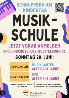 Die Musikschule Büttelborn bietet wieder die Möglichkeit zum Reinschnuppern am Kindertag, 29.06. an.
