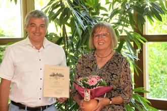 Am 17.08.2021 feierte Carola Ellmaurer ihr 40-jähriges Dienstjubiläum in der Gemeinde Büttelborn. Nun ist es soweit: Carola Ellmaurer verabschiedete sich am 20.7.2022 in den wohlverdienten Ruhestand. "Herzlichen Dank Carola Ellmaurer für die vielen Jahre als Standesbeamtin in der Gemeinde Büttelborn. Bürgermeister Marcus Merkel überreichte die Urkunde und einen Blumenstrauß zum Renteneintritt. „Wir wünschen Ihnen für die Zukunft alles erdenklich Gute und viel Spaß und Gutes Gelingen bei allen privaten Projekten!“