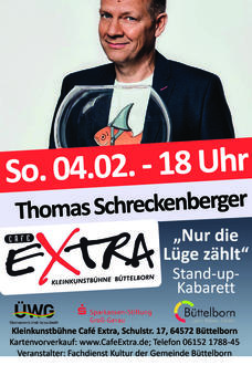 Am Sonntag, 04.02., 18 Uhr, begeistert Thomas Schreckenberger mit seinem Programm „Nur die Lüge zählt“