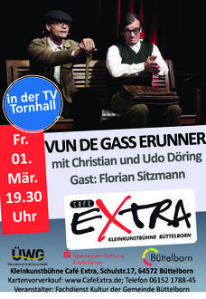 Karten erhalten Sie im Online-Ticketshop ztix über www.cafeextra.de oder direkt beim Veranstalter, Gemeinde Büttelborn, Fachdienst Kultur, Tel. 06152 1788-45.