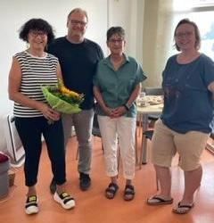 Zum 40 jährigen Dienstjubiläum von Frau Regina Höch am 01.08.2022 gratulierten die Erste Beigeordnete Frau Ute Kroiß, Fachbereichsleiter Herr Carsten Loos, Frau Katrin Erdmann sowie für den Personalrat Frau Christiane Schröder-Bierlich in der KITA Dreißigruten in Klein-Gerau.