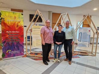 Eröffnung der Ausstellung im Rathaus v.l.n.r. Carsten Loos (Fachbereichsleiter Kinder- Jugend & Soziales), Daniela Hoffmann (Soziale Angelegenheiten), Marcus Merkel (Bürgermeister)