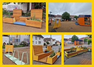 Stadtumbau Ortskern Büttelborn | Die viermonatige Testphase im Ortskern von Büttelborn neigt sich dem Ende. Anfang November 2025, nach dem letzten Genussmarkt in diesem Jahr, werden die der Gemeinde kostenlos zur Verfügung gestellten Stadtmöbel in der Mainzer Straße und am Rathausplatz abgebaut und das Experiment endet regulär. Gefördert wurde der Test im Rahmen des Programms „Straßen neu entdecken“.
