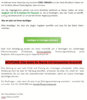 Bitte nehmen Sie keine Kontakt zu den Firmen auf und zahlen sie keine vermeintlichen Bußgelder.