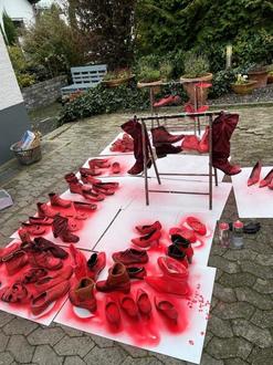 Mit den aufgehängten roten Schuhen wollen wir gegen Gewalt an Frauen und Mädchen protestieren, der Opfer gedenken und über Hilfsangebote informieren.
